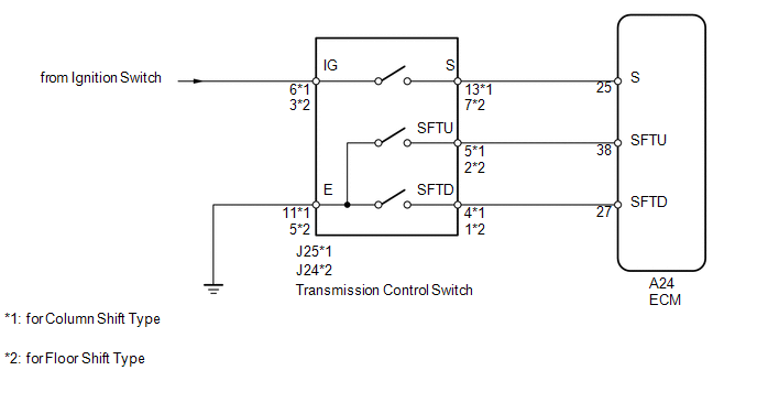 | (b) for Floor Shift Type: (1) Disconnect the J24 transmission control switch connector.