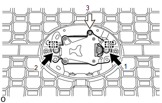 (1) Attach the 2 guides. (2) Temporarily install the millimeter wave radar sensor assembly with the 2 bolts and screw. (3) Tighten the 2 bolts and screw in the order shown in the illustration. Torque: Bolt : 2.5 N·m {25 kgf·cm, 22 in·lbf} (c) for Type C: