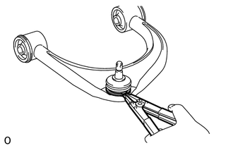 2. REMOVE FRONT UPPER BALL JOINT DUST COVER LH (a) Using a snap ring expander, remove the dust cover set ring. |