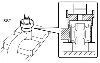 2. INSTALL FRONT SUSPENSION UPPER ARM BUSH (a) Using SST and a press, press in a new bush. SST: 09710-26011 09710-05061 |