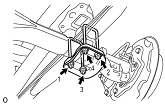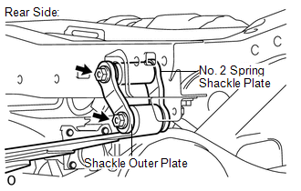 PROCEDURE 1. INSTALL REAR SPRING SHACKLE BUSH   (a) Install the 2 shackle bushes to the frame. 2. INSTALL TUBE   (a) Install the tube to the bush. 3. TEMPORARILY INSTALL REAR SPRING ASSEMBLY LH   (a) Temporarily install the spring with the No. 2 spring shackle plate, shackle outer plate, 2 washers and 2 nuts to the rear side.