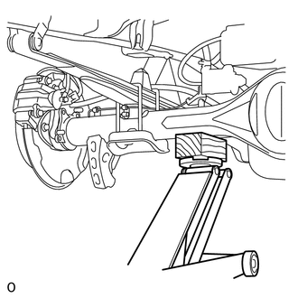 PROCEDURE 1. SUPPORT BODY WITH SAFETY STANDS (a) Jack up and support the body on safety stands. (b) Lower the axle housing until the leaf spring tension is free, and keep it at this position. 2. REMOVE REAR WHEEL 3. REMOVE REAR SHOCK ABSORBER ASSEMBLY LH (a) Support the rear axle housing with a jack using a wooden block to avoid damage.