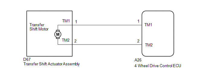 DESCRIPTION This DTC is detected when an open circuit or short to ground is detected in the transfer shift motor drive circuit. |