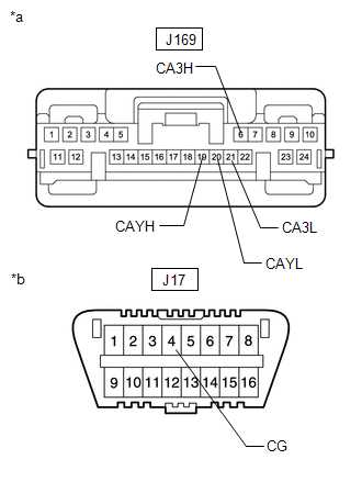 gateway ECU) and terminal 4 (CG) of the DLC3, or terminal 21 (CA3L) of