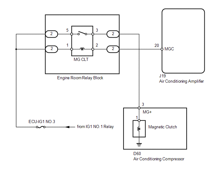 D60-3 (MG+) or Engine room relay block magnetic clutch relay terminal