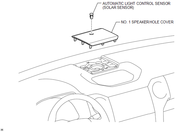 Installation INSTALLATION PROCEDURE 1. INSTALL AUTOMATIC LIGHT CONTROL SENSOR (SOLAR SENSOR) (a) Attach the 2 claws to install the automatic light control sensor (solar sensor). 2. INSTALL NO. 1 SPEAKER HOLE COVER