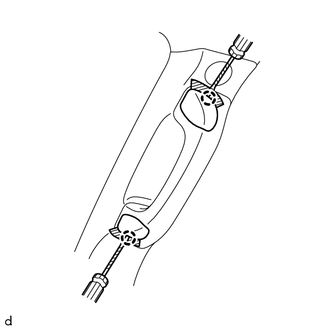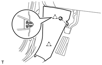 (e) Pass the front seat outer belt assembly LH through the hole of the center pillar garnish LH. 22. REMOVE CENTER PILLAR GARNISH RH HINT: Use the same procedure described for the LH side. 23. REMOVE FRONT SHOULDER BELT ANCHOR PLATE SUB-ASSEMBLY LH