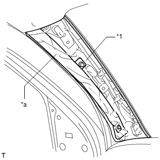 (d) Detach the 4 clips and remove the front quarter trim panel assembly LH. (e) Pass the rear seat outer belt assembly through the hole of the front quarter trim panel assembly LH. 28. REMOVE FRONT QUARTER TRIM PANEL ASSEMBLY RH HINT: Use the same procedure described for the LH side. 29. REMOVE ROOF CONSOLE BOX ASSEMBLY Click here 30. REMOVE INNER REAR VIEW MIRROR STAY HOLDER COVER (w/ EC Mirror) Click here 31. REMOVE NO. 1 ROOM LIGHT ASSEMBLY Click here 32. REMOVE VISOR ASSEMBLY LH