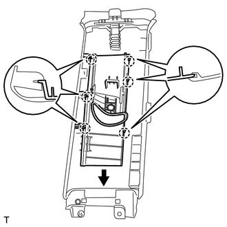 REMOVAL PROCEDURE 1. PRECAUTION NOTICE: After turning the ignition switch off, waiting time may be required before disconnecting the cable from the battery terminal. Therefore, make sure to read the disconnecting the cable from the battery terminal notice before proceeding with work. Click here 2. DISCONNECT CABLE FROM NEGATIVE BATTERY TERMINAL CAUTION: Wait at least 90 seconds after disconnecting the cable from the negative (-) battery terminal to disable the SRS system. NOTICE: When disconnecting the cable, some systems need to be initialized after the cable is reconnected. Click here 3. REMOVE FRONT SEAT ASSEMBLY (for Manual Seat) Click here 4. REMOVE FRONT SEAT ASSEMBLY (for Power Seat) Click here 5. REMOVE FRONT SEAT ASSEMBLY (for Center Seat) Click here 6. REMOVE REAR SEAT ASSEMBLY Click here 7. REMOVE FRONT DOOR SCUFF PLATE LH