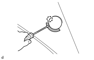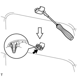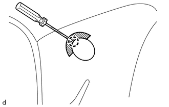 37. REMOVE COAT HOOK HINT: Use the same procedure to remove the coat hook on the other side. (a) Using a screwdriver, detach the 2 claws and remove the coat hook cap.
