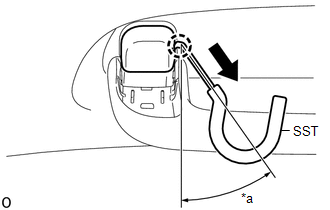 (b) Pull SST as shown in the illustration to disengage the claw. NOTICE: To prevent the assist grip assembly from being damaged, make sure to only pull SST as shown in the illustration. HINT: Use the same procedure for the claw on the other side of the assist grip cover LH.