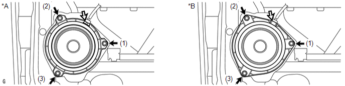 (b) Install the rear No. 1 speaker assembly with the 3 screws. NOTICE: Do not touch the cone part of the speaker. HINT: Install the screws in the order shown in the illustration. 3. INSTALL REAR DOOR TRIM BOARD SUB-ASSEMBLY LH