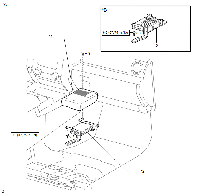 (a) Attach the guide to install the stereo component amplifier assembly. (b) Install the 3 bolts. Torque: 8.5 N·m {87 kgf·cm, 75 in·lbf} HINT: Tighten the bolts in the order shown in the illustration. (c) for 12 Speakers: Connect the 3 connectors. (d) except 12 Speakers: Connect the 2 connectors. 2. INSTALL AUDIO AMPLIFIER COVER (a) Attach the 3 clips to install the audio amplifier cover. 3. INSTALL FRONT SEAT ASSEMBLY RH (a) for Manual Seat: Click here