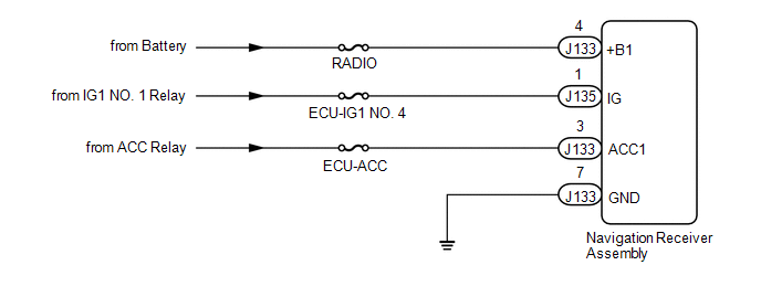 DESCRIPTION This circuit provides power to the navigation receiver assembly. WIRING DIAGRAM CAUTION / NOTICE / HINT NOTICE: Inspect the fuses for circuits related to this system before performing the following inspection procedure. PROCEDURE
