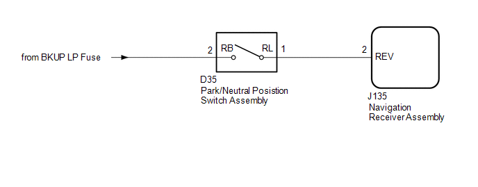 DESCRIPTION The navigation receiver assembly receives a reverse signal from the park/neutral position switch assembly. WIRING DIAGRAM CAUTION / NOTICE / HINT NOTICE: Inspect the fuses for circuits related to this system before performing the following inspection procedure. PROCEDURE
