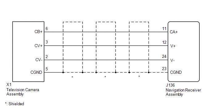 | DESCRIPTION This is the display signal circuit between the navigation receiver assembly and the television camera assembly. WIRING DIAGRAM   PROCEDURE