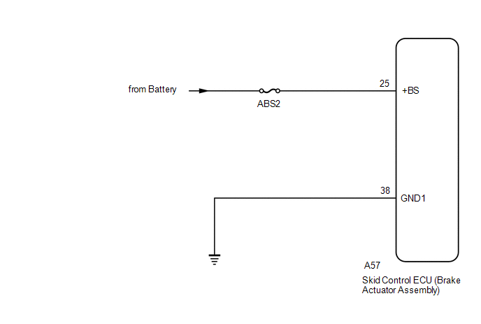| DESCRIPTION If a malfunction is detected in the power supply circuit, the skid control ECU (brake actuator assembly) stores this DTC and the fail-safe function prohibits ABS operation. This DTC is stored when the +BS terminal voltage meets one of the DTC detection conditions due to a malfunction in the power supply or charging circuit such as the battery or alternator circuit, etc. The DTC is cleared when the +BS terminal voltage returns to normal.