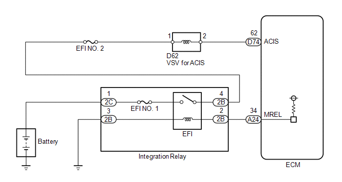 DESCRIPTION This circuit opens and closes the Intake Air Control Valve (IACV) in response to the engine load in order to increase the intake efficiency (ACIS: Acoustic Control Induction System). WIRING DIAGRAM PROCEDURE