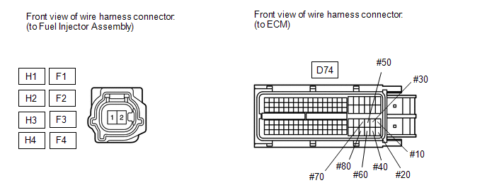 CHECK HARNESS AND CONNECTOR (FUEL INJECTOR ASSEMBLY - ECM) |