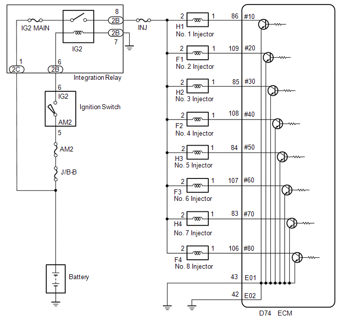 DESCRIPTION The fuel injectors are located on the intake manifold. They inject fuel into the cylinders based on the signals from the ECM. WIRING DIAGRAM