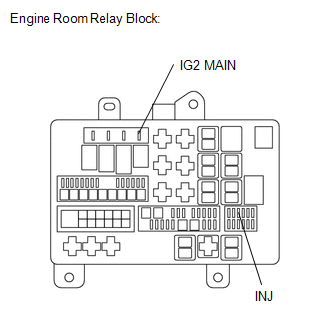 (a) Remove the INJ fuse and IG2 MAIN fuse from the engine room relay block.