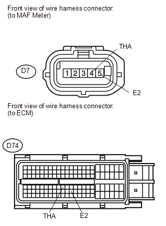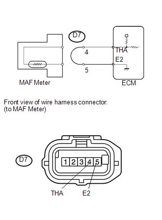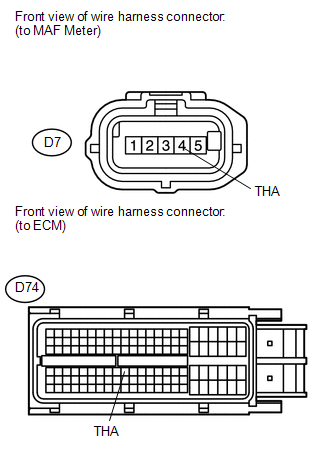 (b) Connect terminals 4 (THA) and 5 (E2) of the MAF meter wire harness side connector.