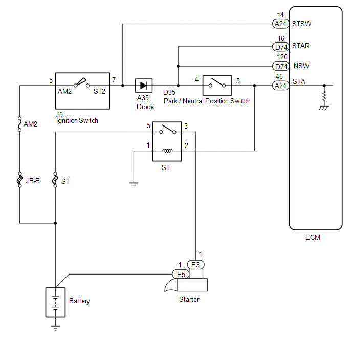 terminal STA of the ECM. If the ECM detects the Starter Control (STA)