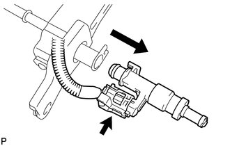 (c) Remove the 2 delivery pipe spacers and 4 insulators from the cylinder head sub-assembly LH. 10. REMOVE FUEL INJECTOR ASSEMBLY (a) Remove the fuel injector assembly from the fuel delivery pipe sub-assembly, and then disconnect the injector connector.